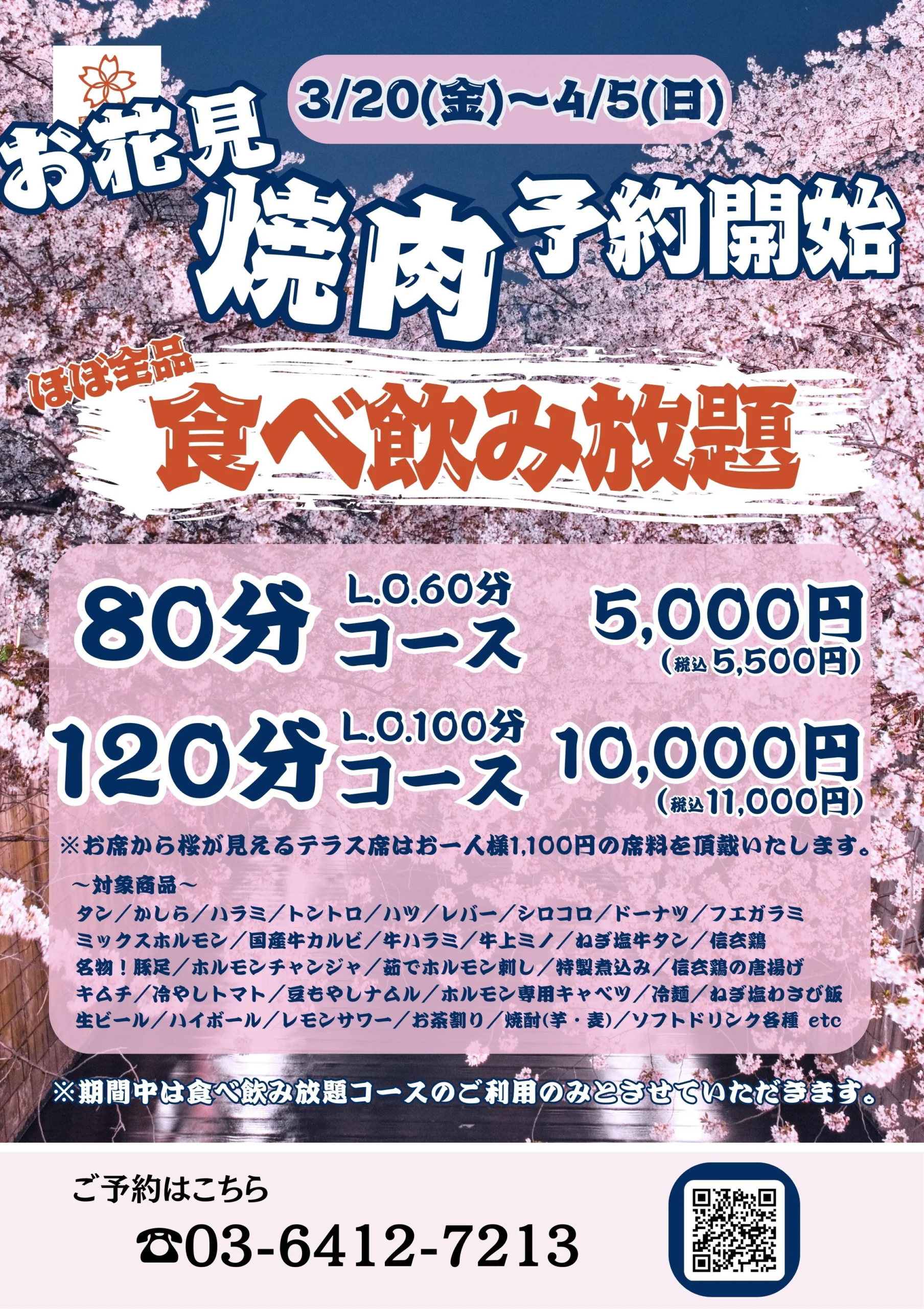お花見と一緒に、自慢の焼肉とホルモンを心ゆくまでお楽しみください!